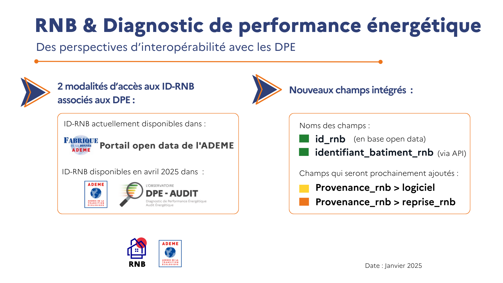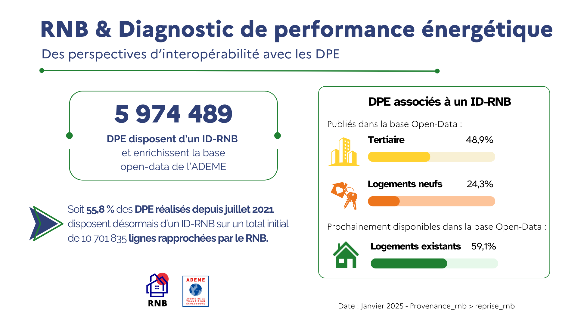 L’intégration de l’identifiant du bâtiment du RNB, appelé ID-RNB, à chaque DPE permet d’améliorer la base de données de l’observatoire DPE-AUDIT.