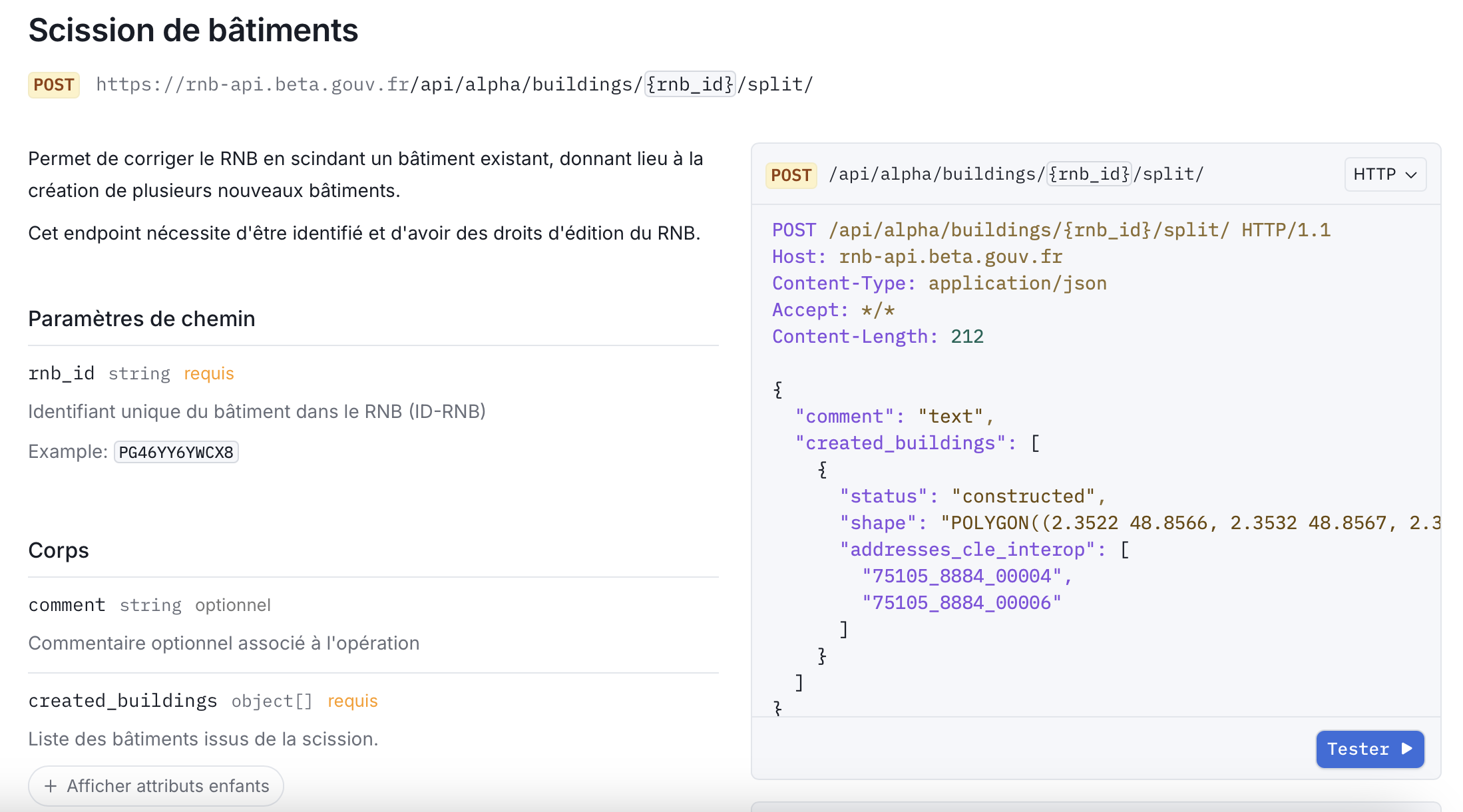 - Modifier la ou les adresses associées au bâtiment, avec les clés d’interopérabilité BAN