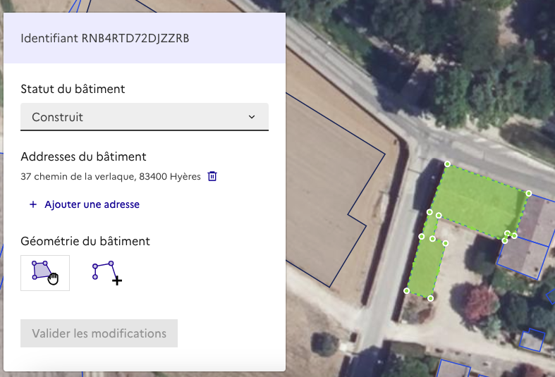 - Fusionner des bâtiments distincts qui n’en sont qu’un seul en réalité (ex. une véranda ayant son propre ID-RNB alors qu’elle est attenante au bâtiment principal)